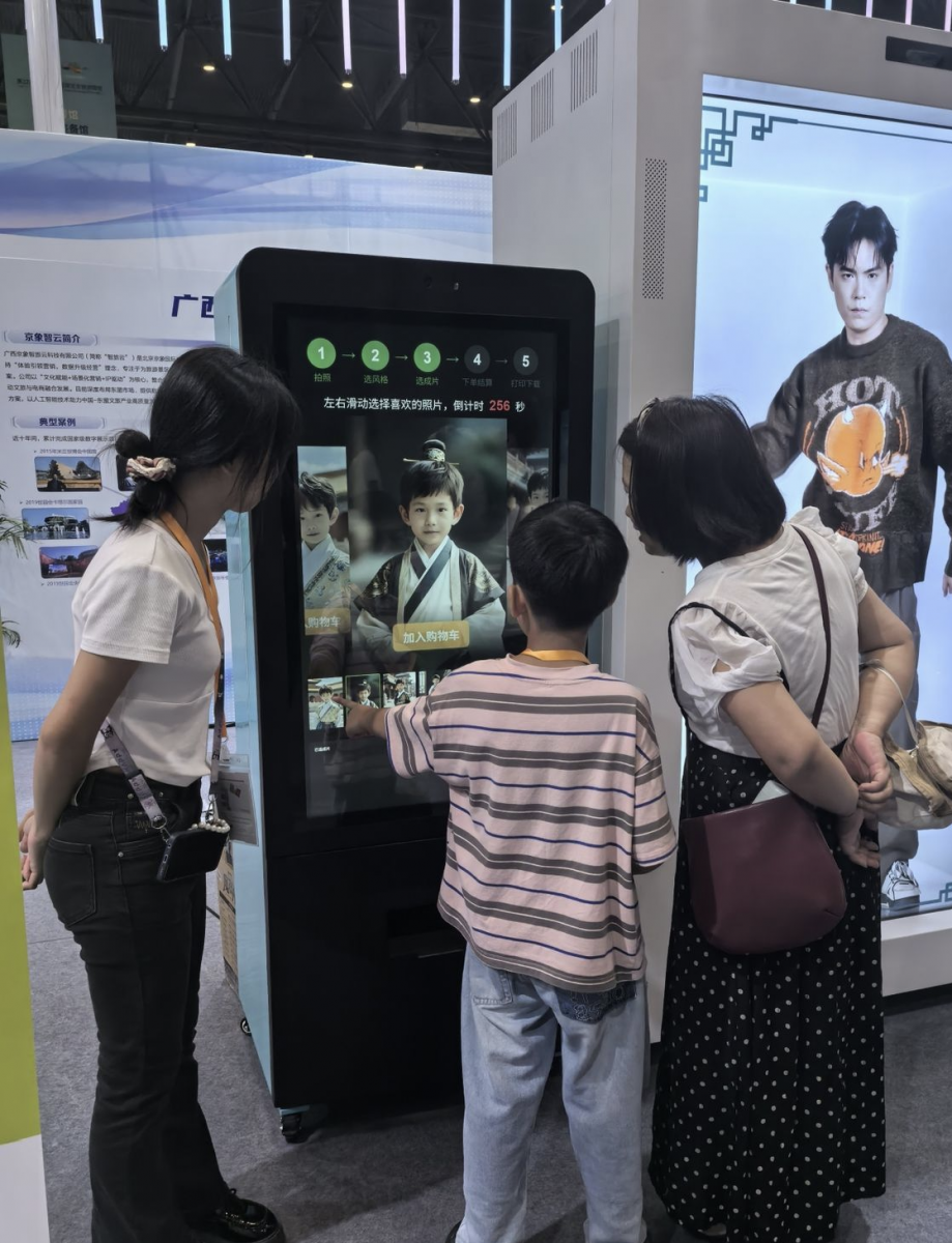 AI全息旅拍舱前更是人头攒动,观众无需换装,只需拍一张照片,就能借助AI技术实现变装与场景转换,即时获取带有桂林山水、东盟风情等元素的照片和视频。“刚把照片发朋友圈,就有人问在哪体验,这技术太神奇了!”来自马来西亚的参展商陈先生说。